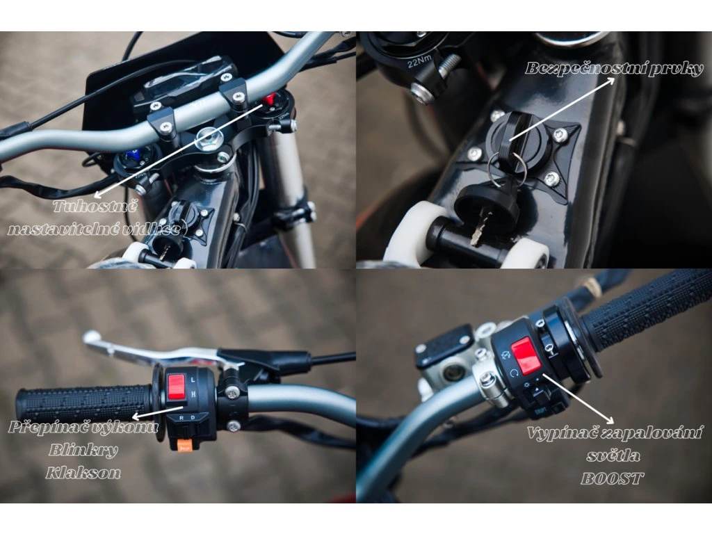 Údržba je výrazně jednodušší než u spalovacích motorek – žádný olej, svíčky ani palivo. Stačí pravidelná kontrola řetězu, brzd a podvozku.