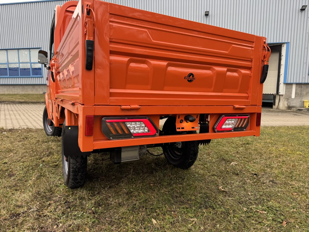 Elektromotor o výkonu 3000 W v kombinaci s redukcí do pomala poskytuje vysoký krouticí moment potřebný pro jízdu s plně naloženou korbou. Maximální nosnost až 500 kg umožňuje efektivní přepravu materiálu, nářadí nebo zásob.